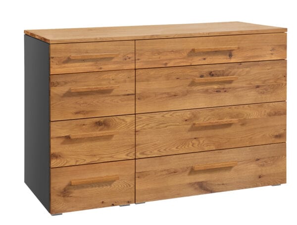 Die Kommode „Cassino“ ist eine praktische Ergänzung für Ihr Zuhause. Mit insgesamt acht Schubladen, davon vier breite und vier schmale, bietet sie Ihnen eine vielseitige Aufbewahrungslösung und fügt sich zugleich harmonisch in Ihre Einrichtung ein.