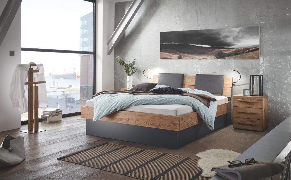 Oak-Wild Vintage – Cadro 18 Bettrahmen in 90-Wildeiche Vintage natur, Practico Box Bettkasten in 16-Anthracit, Alpa Kopfteil in 90-Wildeiche Vintage natur, Sano Kissen in 334-Casual carbon